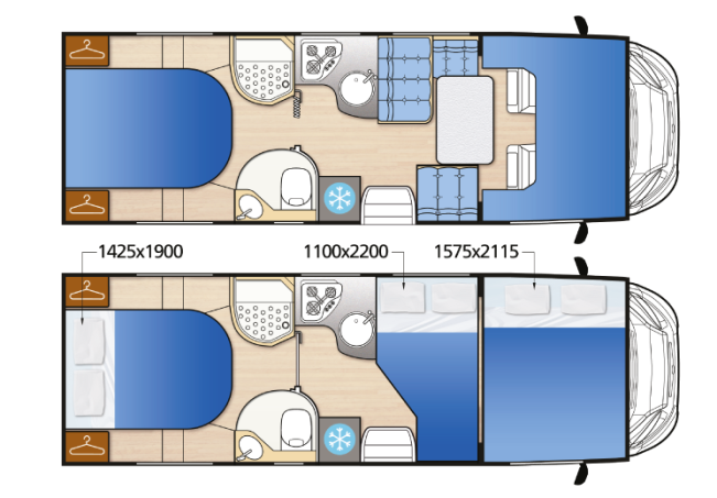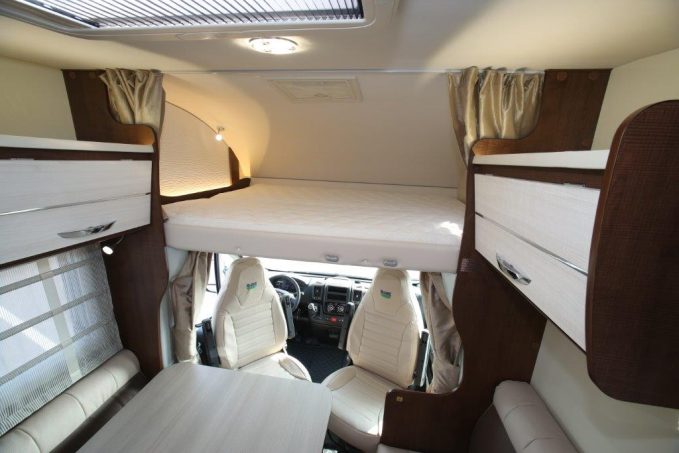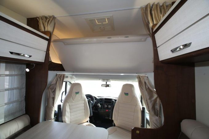 S’il n’était les 3,15 m de hauteur maximum et le couchage relevable en capucine afin de faciliter le passage vers la cabine, on pourrait se croire dans un profilé de la marque. Le mobilier est tout aussi soigné et bien mis en valeur par le rétroéclairage à LED, l’équipement intègre un magnifique pied de table télescopique, et la douche est indépendante. L’espace nuit est conforme aux standards du lit central avec module de toilette dédoublé. Le réfrigérateur, pour ne pas l’oublier, cube 150 litres. Le tout tient dans 7,34 m et s’avère idéal pour 4 passagers et propose 5 couchages. Le prix, sur Fiat Ducato 2,3 l 130 ch, reste sous les 51.000 €.