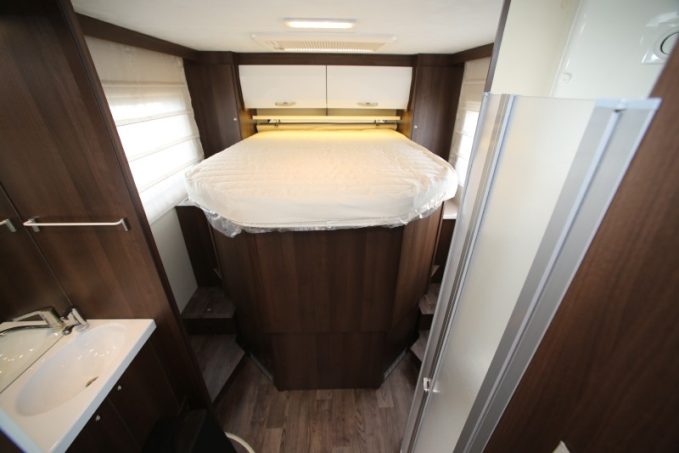 Ce profilé de moins de 7,00 m, avec lit central, repose sur le nouveau Ford Transit. Parmi ses atouts, un bloc de 155 ch, cinq places route et cinq places nuit, dont un lit de pavillon électrique et un lit central à hauteur variable. On y trouve aussi une soute généreuse et un bon niveau d’équipement : rétros électriques, clim cabine, autoradio avec commandes au volant, régulateur de vitesse, toit panoramique, moustiquaire de porte de cellule, housses de sièges de cabine assortis…