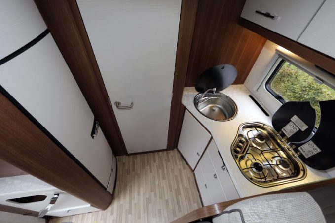 Pour développer son nouvel intégral Rotec I 585, la marque allemande s'est inspirée du plan de son profilé H 577, avec une salle d'eau arrière spacieuse. Le salon est vraiment convivial, capable d’accueillir jusqu’à cinq personnes. L’unique couchage permanent est au-dessus, avec un lit de pavillon bien dimensionné.
