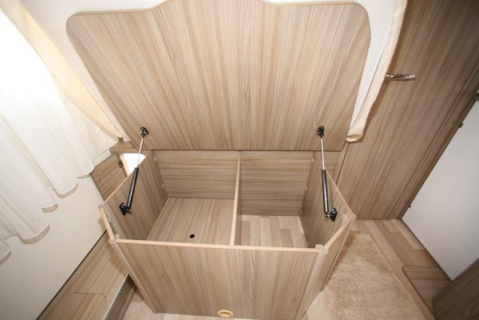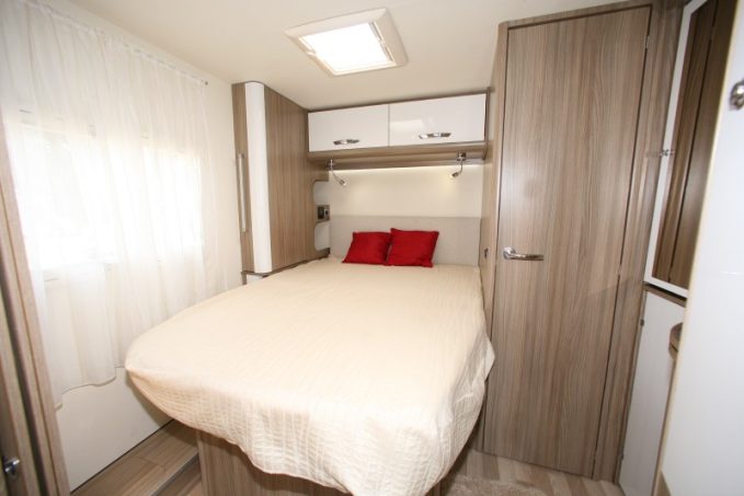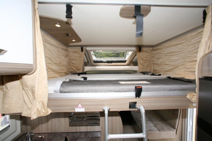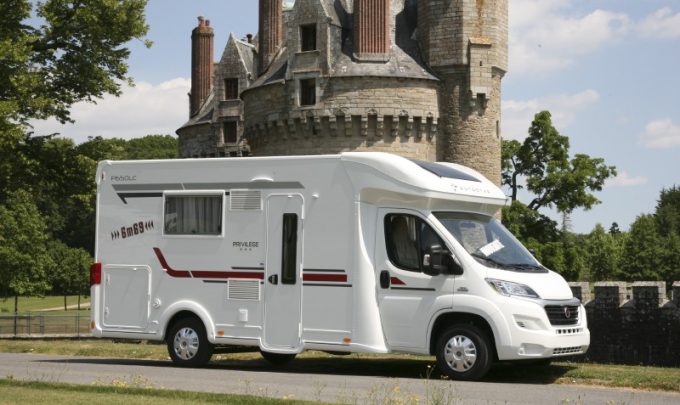 Le P650 LC Privilège ci-contre, équipé d'un lit central décalé et d'un lit de pavillon, se présente comme le profilé le plus compact puisqu'il n'affiche que 6,69 m de long.
