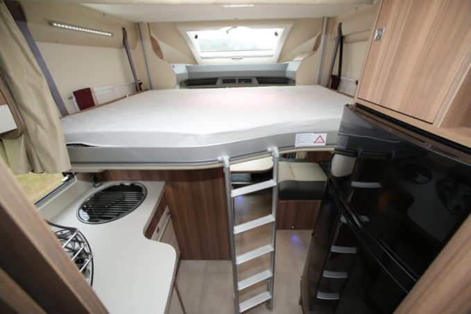 Ce profilé à lit central relevable (Easy Bed) ne dépasse pas les 7,50 m. Disponible en finition Genesis ou Mageo, le 398 EB est homologué pour 4 places carte grise et 4 places nuit. De série, il est motorisé par un 2,2 TDCi de 125 ch. Il sera livrable aussi, contre un supplément, en 155 ch. L'équipement standard comprend la cabine blanche et divers systèmes de contrôle électroniques. D'autres possibilités seront envisageables soit sous la forme d'un pack Prestige, soit d'options individuelles classiques.