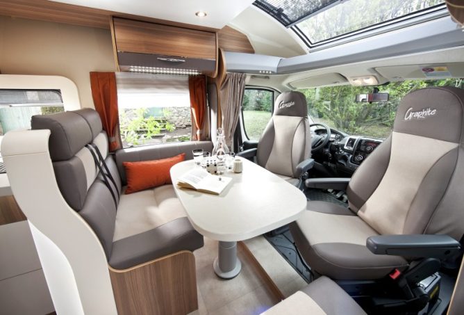 Proposé comme une série spéciale de printemps bien équipée (climatisation, autoradio CD, radars de recul, réfrigérateur AES de 175 l, chauffage à carburant, verrouillage centralisé de toutes les portes...), le Challenger Graphite Edition 388 EB se démarque avant tout par son implantation. Celle-ci combine un lit central à hauteur variable sur garage avec une salle d'eau transversale comprenant un lavabo en ilot, une cabine de douche et un wc séparés. Homologué quatre places carte grise, ce profilé peut accueillir cinq personnes autour de sa table de salon et pour la nuit (lit de pavillon + banquette modulable). Identifiable à sa décoration extérieure spécifique, l'édition Graphite bénéficie d'une ambiance intérieure contemporaine.