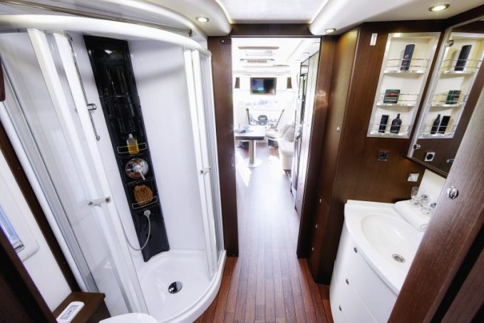 Le Centurion impose le respect, rien qu'à l'arrêt, avec ses mensurations impressionnantes (10,29 m de long, 3,72 m de haut et 2,45 m de large). D'autant plus quand la paroi latérale gauche coulisse vers l'extérieure (slide out à commande électrique) pour élargir l'espace du salon et de la cuisine. Au-delà de sa présentation exemplaire (sellerie cuir) et de sa finition superbe (mobilier en bois massif), ce liner offre le même confort qu'un yacht mais sur la route, pour quatre personnes. Il repose sur un châssis poids lourd MAN autorisant jusqu'à 4 260 kg de charge utile.