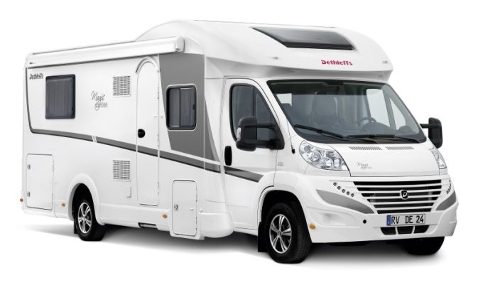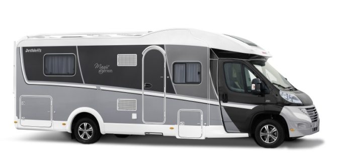 Proposé en carrosserie blanche (Pack White) ou noire (Pack Black), le Dethleffs Globe 4 T7151- 4 ''Magic Edition'' se présente comme un profilé de 7,61 m avec lit de pavillon.