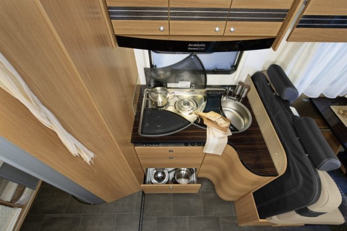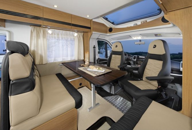 A noter que les modèles vendus en France seront équipés d'un salon avec banquette en L (contrairement à la photo) permettant d'accueillir six personnes à table.