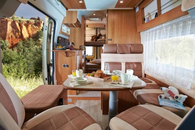 Le Family Van de Campérêve n’est pas un fourgon aménagé comme les autres puisqu’il s’adresse comme le suggère son nom… aux familles. Reposant sur une version heavy H3 du Fiat Ducato, il propose six places pour la nuit, cinq places sur sa carte grise, pour seulement 5,99 m de long et 2,79 m de haut. Ce modèle se démarque par sa casquette avant en polyester où se loge un couchage escamotable en long, sous le pavillon. Il dispose d’un grand réfrigérateur (160 l), de nombreux rangements (grâce à son double-plancher) et de réservoirs d’eaux isolés. L’arrière du véhicule est dédié aux enfants, avec deux couchettes superposées. Celle du bas peut s'escamoter pour former une vaste soute. Le 5e passager s’installe dos à la route, sur un siège pliant équipé d’une ceinture ventrale. La dînette, une fois transformée, constitue le second grand lit.