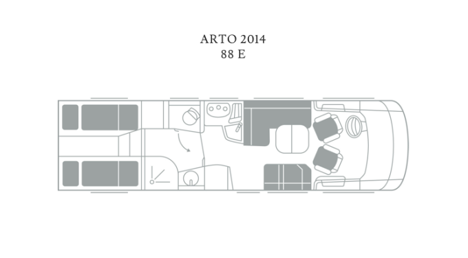 Avec sa grande taille (8,76 m) et sa face avant très design, le liner allemand sort naturellement du lot. L'implantation de l'Arto 88 E fait appel à des lits individuels à l'arrière et escamotable à l’avant, avec canapé en L et banquette. Son ambiance intérieure, revue par la styliste Judith Milberg, n'a rien à envier à celle d'un loft chic. Sa peinture originale (Carbone Blue) comme sa décoration adhésive chromée (toutes deux en option) attiront davantage les ''fashions'' camping-caristes.