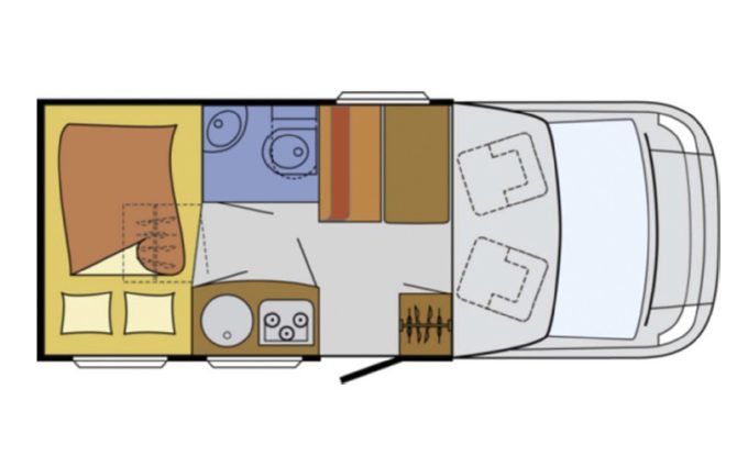 Avec une longueur de 5,98 m (pour 2,33 m de large), les virages en épingle et les manœuvres en ville ne poseront aucun problème à ce nouveau profilé allemand. Le Sunlight T60 ne néglige pas non plus son aménagement. Il offre une sensation d’espace appréciable avec une implantation à lit arrière transversal sur soute. Le cabinet de toilette se transforme facilement en cabine de douche grâce à une paroi pivotante. Les rangements se montrent nombreux et astucieux. Côté équipement, le chauffage fait appel à un combi Truma C6. Prix conseillé : à partir de 37 450 € (en motorisation 2.0 MJTD 115 ch).