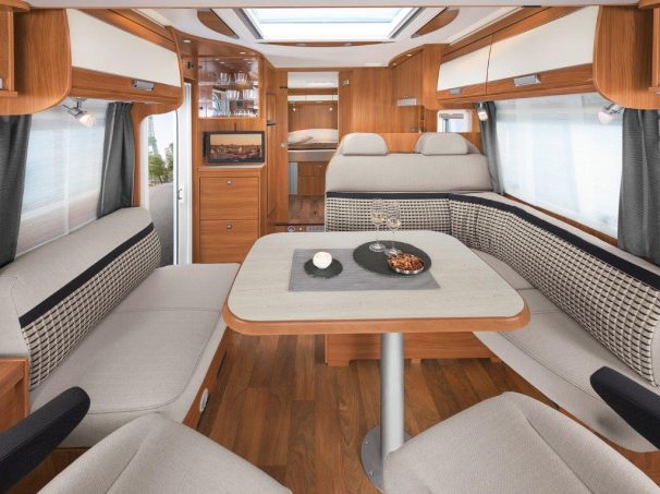 Les deux modèles concernés, les 7150 en profilé (7,51 m) ou en intégral (7,55 m), sont sur châssis Al-Ko. Ils disposent tous deux d’un lit central version king-size, d’un maxi salon, d’une cuisine en L, d’une salle d’eau en deux compartiments, et sont évidemment enrichis côté équipements. On y apprécie notamment des pare-chocs spécifiques sur une carrosserie personnalisée, des barres de toit, des éclairages à leds basse consommation, ou encore un immense réfrigérateur de 190 litres à sélection automatique d’énergie.