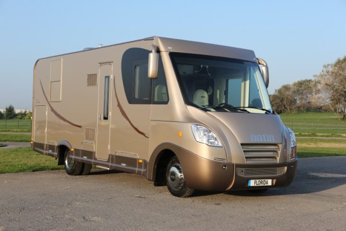 Le design avant du Florida s'inspire directement de celui de son grand frère Notin Liner, jusqu'à en reprendre sa teinte champagne. Cet intégral poids lourd (5 300 kg de PTAC) affiche une longueur de 7,60 m, pour une largeur de 2,32 m, et reçoit un grand pare-brise panoramique. Ce dernier offre à la fois une meilleure vision et améliore l'aérodynamisme. Ce modèle repose sur le châssis Mercedes Sprinter 2013 qui bénéficie d'aides électroniques améliorant tenue de route et sécurité. Sa motorisation (190 ch) répond déjà aux prochaines normes (Euro 6) en matière de dépollution. Comme à son habitude, le plus ancien constructeur français propose un intérieur élégant (mobilier en bois massif) à la finition exemplaire (carrosserie en Alufiber, double plancher avec isolation de 95 mm). Le Florida adopte une implantation à la mode, avec un lit central, mais se démarque par sa salle d'eau grand format (lavabo au centre entouré de la cabine de douche et des wc).