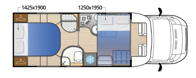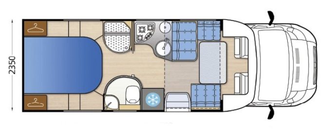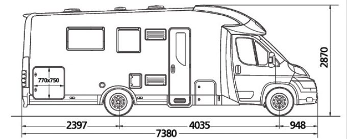 Passé il y a quelques mois dans le giron du groupe Trigano, le constructeur transalpin en profite pour dynamiser son offre et sort une série limitée très attractive de son profilé Tandy à quatre places carte grise. En plus d'un prix serré (moins de 53 000 €), le niveau d'équipements (rétros électriques dégivrants, double airbag, climatisation cabine, régulateur de vitesse, Traction+, ESP) comme la présentation générale sont valorisants (cabine de couleur, pare-chocs avant peint, pied de table en bois massif emprunté aux intégraux Nevis). L’implantation du Tandy Karat Edition s'avère des plus classiques. Sa chambre s'équipe d'un lit central (190 x 142 cm), situé assez bas pour améliorer l’accès au couchage, et d'une salle d'eau en deux parties. Le second lit, placé au niveau du pavillon, se manœuvre électriquement.