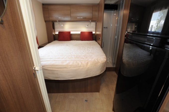 Déjà commercialisé avec une implantation à lit central (modèle 7018), avec des lits jumeaux (modèle 7017) ou un lit transversal (modèle 6014), le Sirius sera prochainement proposé en version 2098 (6,99 m de long) avec un lit à la française (200 x 140 cm) légèrement décalé vers le centre. De quoi rendre son accès par la gauche plus aisé. Le salon, de son côté, pourra accueillir confortablement jusqu'à six convives. Le lit de pavillon (190 x 140 cm), parfaitement intégré et facile à manipuler, offrira quasiment les mêmes dimensions que celui de la chambre.