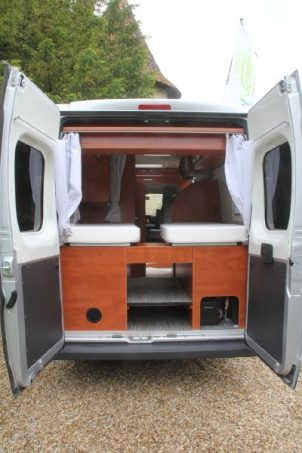 Grâce à la longueur du Fiat Ducato (6,36 m), le DuoVan peut proposer deux lits séparés (montés sur vérins) affichant de respectables dimensions (80 x 187 cm et 80 x 192 cm), tout en laissant entre eux un couloir assez large. Dans la salle d'eau, le WC à cassette, monté sur glissières, peut se loger dans un volume récupéré sous le lit gauche. De quoi disposer de plus d'espace pour la toilette. Les rangements s'avèrent nombreux. Un troisième couchage est même envisageable après transformation de la dinette.