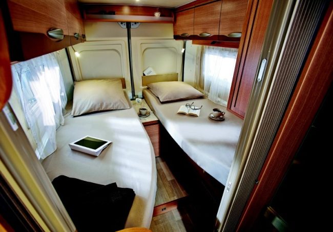 Son nouveau fourgon aménagé Magellan 646, autorise en effet la transformation de sa chambre arrière. Au besoin, ses deux lits jumeaux se raccordent pour former un seul et unique couchage pour deux. Par ailleurs, ses deux sommiers individuels se relèvent séparément, ce qui permet d’embarquer deux vélos. Côté équipements, le Magellan 646 accueille un réfrigérateur de 100 litres, et sa cabine de conduite profite de la climatisation, de rétros et vitres électriques, de sièges pivotants et de stores d’occultation Remis. Pour 299 € de plus, notez que le Pack Confort y ajoute airbags, régulateur de vitesse, autoradio, deux assises confort, un bouclier peint ainsi qu'un inverseur de gaz… le tout représentant un avantage client de plus de 1 200 €.