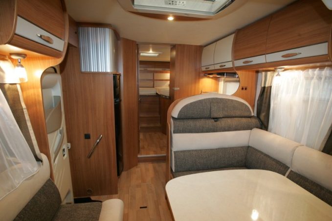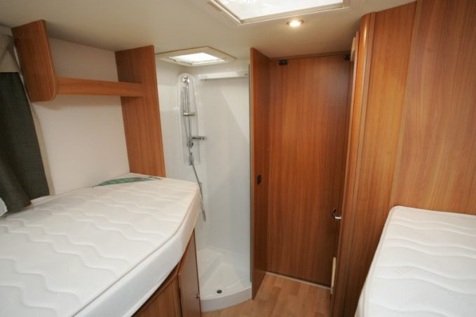 Ce modèle de 7,37 m de long, homologué en quatre places jour et nuit, vient enrichir la Série 8 avec une implantation inédite côté chambre. Celle-ci fait appel à deux lits séparés (avec sommier à lattes et matelas Bultex) qui peuvent bénéficier au choix de deux hauteurs différentes (75 ou 125 cm). Dans la première configuration, les penderies surplombent les couchages. Dans la seconde, elles trouvent leur place sous les lits. Le 866F profite d'une salle d'eau en deux parties avec une douche d'angle. Son équipement comprend un chauffage Truma C6, un réfrigérateur de 160 l et une climatisation en cabine.