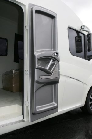 Après des mois d'efforts (1 200 heures de travail), l'Atalante trônait fièrement devant le stand du constructeur de Sérézin du Rhône (69). Habillé d'un superbe blanc nacré (le même que sur la Citroën DS4), cet intégral cache une conception high-tech. Sa cellule monobloc autoportante, en fibre de carbone côté cabine et en polyester côté cellule, ne pèse que 530 kg. Elle bénéficie d'une isolation complète en polyuréthane et repose sur un solide châssis d'Iveco Daily (5,5 t). L'Atalante peut aussi utiliser celui d'un Mercedes Sprinter. Puissant (205 ch avec le 3,0 TD italien), moderne (phares au xénon d'Audi R8 et feux à leds de Lancia Ypsilon) et compact (2,20 m de large), ce véhicule peut disposer au choix d'une longueur variable (entre 5,60 m et 8 m), d'une porte côté chauffeur et de baies vitrées placées à votre convenance. Comptez quand même 165 000 € pour un véhicule sans agencement, en version deux roues motrices (transmission 4x4 en option). C'est l'entreprise Brisebras qui, suivant les goûts et le budget du futur acquéreur, se chargera de l'aménagement sur mesure.