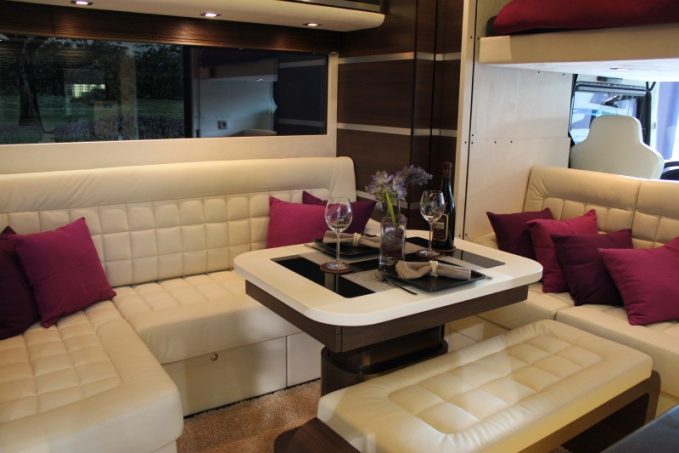 Comptez entre 741 520 € à 837 200 € pour une édition ''Opale'', sur base MAN de 440 ch, avec "slide out" (tiroirs extérieurs) et garage pour une Smart Fortwo ou une Audi A1.