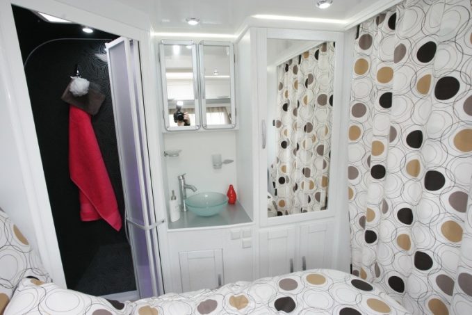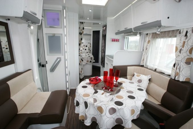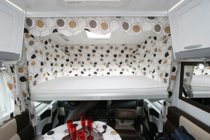 Si son gabarit reste identique à celui du Monza, l'Indiana se démarque par son architecture intérieure. Il adopte, à une nuance près, une implantation qui avait disparu du catalogue avec un lit à la française. Par rapport à ce qui se faisait auparavant, ce n’est plus une salle d’eau complète qui est accolée au couchage permanent mais une grande cabine de douche. Entre cette dernière et la penderie sont intercalés un meuble et une vasque. Le coin WC est logé lui au pied du lit. Le sommier du couchage coulisse pour dégager le pied du lit et faciliter la mise en place des draps. Construit sur une base Mercedes Sprinter, l’Indiana est proposé à partir de 99 500 € en version de base. Comptez 116 500 € pour le modèle Privilège le mieux équipé.