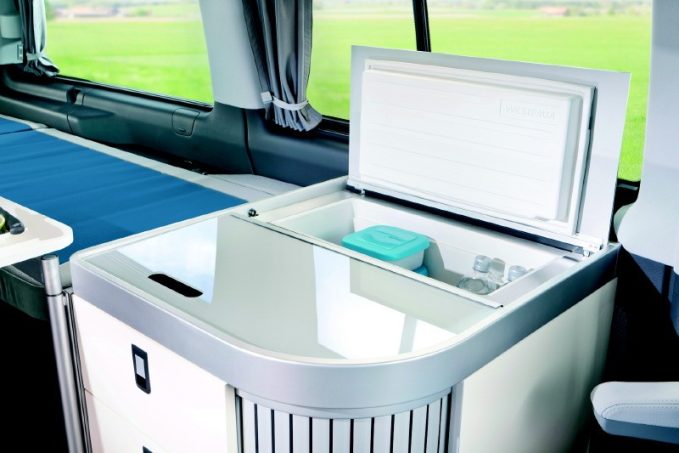 Ce fourgon Westfalia devrait être présenté officiellement au prochain Caravan Salon de Düsseldorf, le 27 août 2011. A l'image de son Camping Bus, plutôt révolutionnaire en 1951, le nouveau modèle à toit relevable de l'aménageur allemand sera le premier de sa catégorie équipé de deux lits individuels transformables en couchage double afin d'assurer un confort digne de ce nom. Riche en équipements, il intègrera une petite dinette et des toilettes.