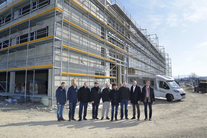 Dethleffs fait bâtir une nouvelle usine à Isny en Allemagne. Et après 6 mois de travaux, le constructeur vient d’annoncer dans un communiqué que le gros œuvre était achevé. « La traditionnelle cérémonie de charpente s’est déroulée, afin de fêter cette étape de la construction », annonce-t-il avant d’ajouter que « Dethleffs agrandit ainsi l’usine existante, d’une superficie supplémentaire de 11 000 m², avec un autre site de production et un centre de développement et de compétences Camper Vans ».