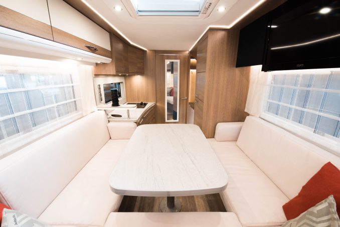 Au total, ce modèle du futur dispose de plus de 30 m2 de panneaux photovoltaïques délivrant une puissance maxi de 3000 watts. Le but est de garantir une totale autonomie et d’alimenter sans problème les équipements de bord comme le réfrigérateur, les plaques de cuisson et le chauffage.
