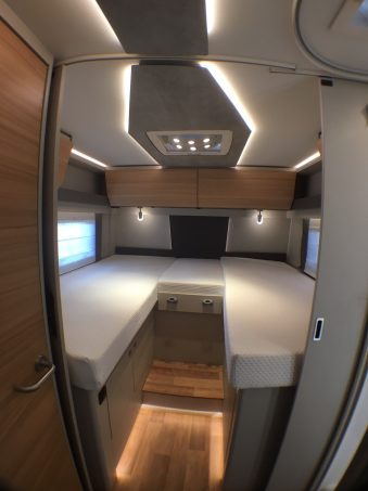Parmi les profilés, on comptera trois modèles à lit central et un à lits jumeaux. Le lit de pavillon sera optionnel, laissant aux acquéreurs la possibilité de le choisir ou de s’en passer. Sans lit de pavillon, le salon baignera dans une magnifique luminosité grâce à un grand skydôme.