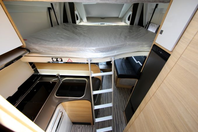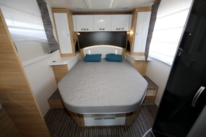 Le Perseo 596 dispose quant à lui d'un lit central généreux (1,50 m de large) avec un sommier réglable en hauteur pour moduler le volume de la soute à sa convenance.