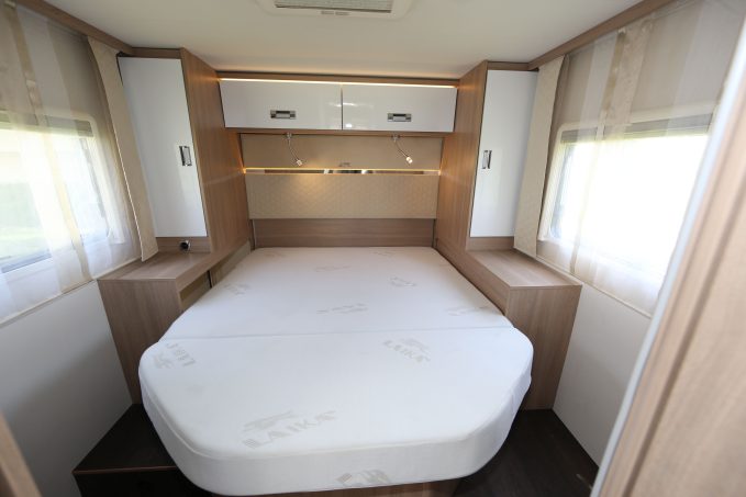 Les Kosmo 509 et 209 sont tous deux équipés de lits jumeaux. Le 509 est le modèle le plus long. Il offre énormément de rangements (on y trouve trois penderies). Le 209 qui fait moins de sept mètres de long sera apprécié par les personnes qui partent en couple. Notons toutefois, que les profilés Kosmo, comme tous les profilés Laïka, peuvent être équipés en option d’un lit de pavillon à commande électrique.