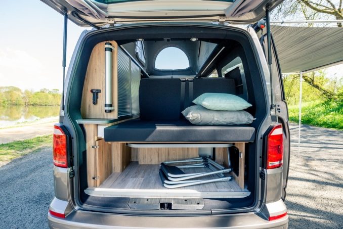 En franchissant la Manche, la marque britannique Danbury a décidé de s'ouvrir au marché français. Pour être honnête, cet aménageur appartient au groupe Pilote après une acquisition en 2017. Pour la France, un unique modèle est à disposition. Avec une grande histoire liée à VW, c’est tout naturellement que Danbury propose un véhicule sur T6 baptisé Surf. Il s’agit de la meilleure vente de cet aménageur avec une implantation classique se rapprochant des incontournables California. L’habitacle dissimule une banquette convertible en couchage double venant en complément de celui présent dans le toit relevable. Pour les commodités, une petite cuisine aménagée reçoit réchaud deux feux, évier inox et petit réfrigérateur à compression de 50 l.