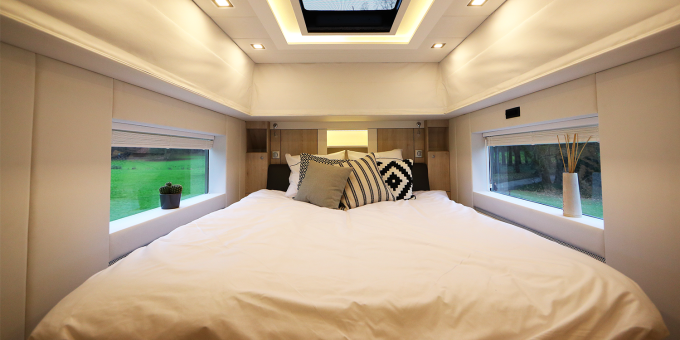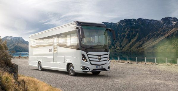 Cet impressionnant camping-car capucine de plus de 12 mètres de long possède : un garage XXL, un double-plancher isolant et chauffant, pas moins de quatre couchages fixes, un salon en cuir spacieux et élégant qui peut s’agrandir grâce à la technologie slide-out. Tout est pensé, pour qu’à bord de ce colosse routier, vous vous sentiez comme à la maison. 2 chassis possible : Man ou Mercedes-Benz avec des réservoirs d’eau de 500 litres… pour une autonomie démentielle. Le prix: à partir de 687 530€.
