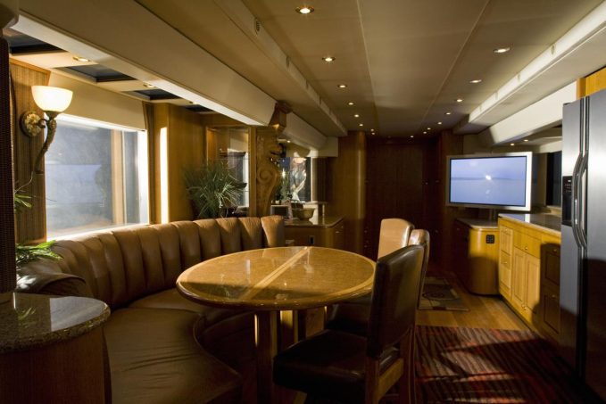 Plus connus en France pour être le camping-car de Will Smith. Cette version grand luxe coûte seulement 2,5 millions de dollars. Stores électriques, 14 écrans de télévision, portes coulissantes électriques... Quand on le regarde de l’extérieur, ce camion est incroyablement imposant. Mais à l’intérieur, on ne sait même plus où poser les yeux, tellement le décor est fastueux. En effet, la société Anderson Mobile Estates a pensé l’aménagement et la décoration du camping-car de Will Smith dans les moindres détails.