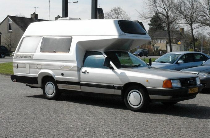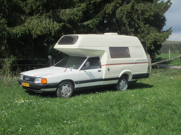 Il est généralement de bon ton de regarder dans le rétroviseur au moment de passer à une nouvelle année. Le coup d’œil que nous vous proposons de jeter aujourd'hui, nous propulse dans les années 80. A l'époque, la marque allemande de voitures de luxe Audi s'était lancée dans l'aventure du camping-car en transformant des Audi 100 et 200 Type 43 (C2) ainsi que des modèles 100 Type 44 (C3) en véhicule de loisirs. La transformation avait été confiée au carrossier Bischofberger. Les Audi recevaient une cellule fixe ou amovible équipée d'un toit relevable.