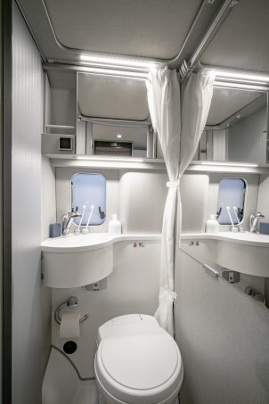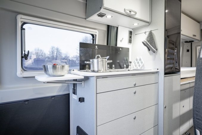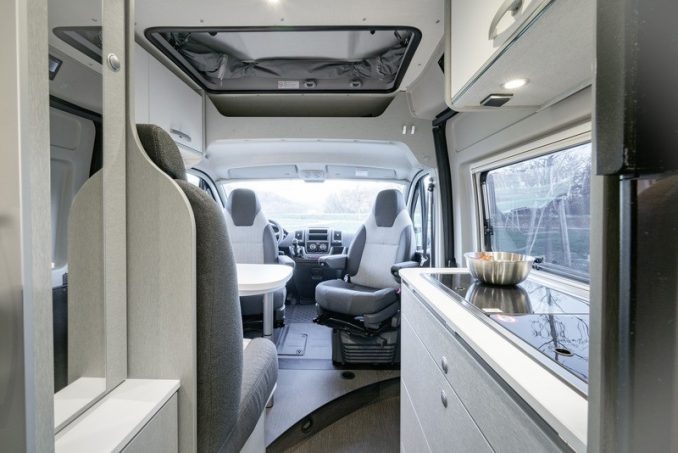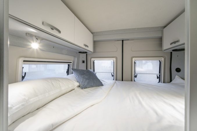 Ce fourgon aménagé compact de moins de 6 m offre un large espace. Il peut accueillir 4 voyageurs grâce à son grand lit double arrière et la couchette 2 places sous le toit relevable. Côté salon, la table de la dînette dispose d’une rallonge pour offrir encore plus de confort lors des repas.