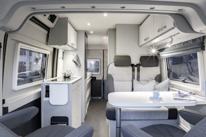A l’occasion du salon CMT de Stuttgart, le constructeur allemand Hymercar vient de dévoiler un nouveau fourgon aménagé en édition limitée. Il s’agit du Free 600 Blue Evolution. Cette série spéciale présente « une allure sportive et moderne », comme le décrit Hymercar dans un communiqué. La carrosserie bicolore allie un noir mat et un bleu métallisé. Son look est complété par sa calandre et ses jantes en alliage 18 pouces. Dans l’habitacle, Hymer opte pour « un aspect particulièrement épuré [...], un design argent poli avec des portes de meuble blanches, un tissu gris bicolore et un nouveau revêtement de sol "Evolution" ».