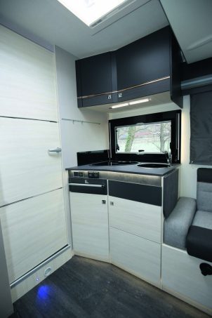 Sur un autre registre, pour la septième année consécutive, Challenger sort en parallèle une série Graphite Edition constituée de deux modèles de profilés, bien fournis en équipements. Il s’agit des Graphite 308 (7,09 m) et 348 (7,49 m). Outre un équipement pléthoriques (pac VIP, caméra de recul...), tous deux sont bridés sur Ford Transit animé par le bloc 170 ch avec transmission automatique. Cette boîte auto est un vrai régal pour la conduite.