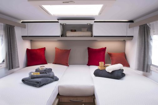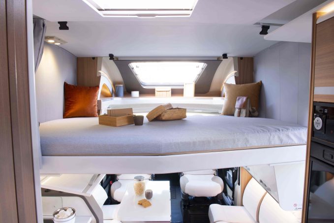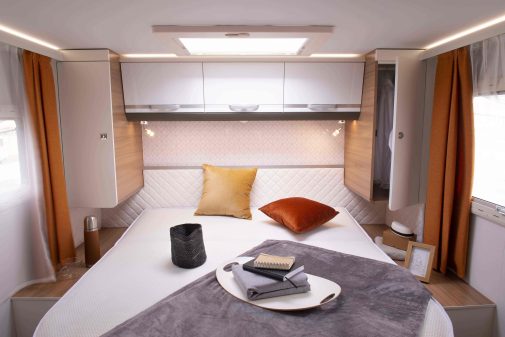 La chambre du Matrix 670 DC est dotée d’un vaste lit central avec matelas de 150 cm de large, qui garantit un confort hors pair. Il est par ailleurs antibactérien, antistatique et anti-odeurs pour lui assurer une belle longévité.