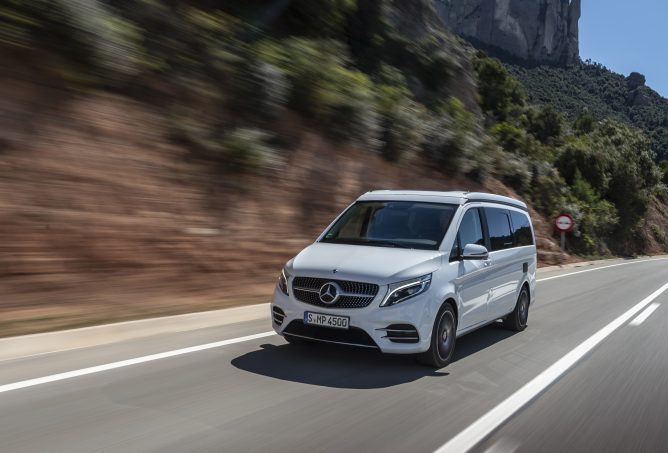 La marque allemande revendique également « une sécurité renforcée » sur son nouveau Classe V avec, entre autres, les systèmes Active Brake Assist et le High Assist Plus. Des fonctions qui permettent respectivement, un freinage automatique en cas de risque de collision et un ajustement automatique des feux de route.