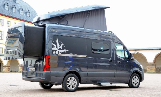 Le James Cook s'apprête à faire son retour au catalogue 2020 de Westfalia. Il utilise pour base le nouveau fourgon Mercedes Sprinter en carrosserie de moins de 6 mètres et roues arrière motrices.
