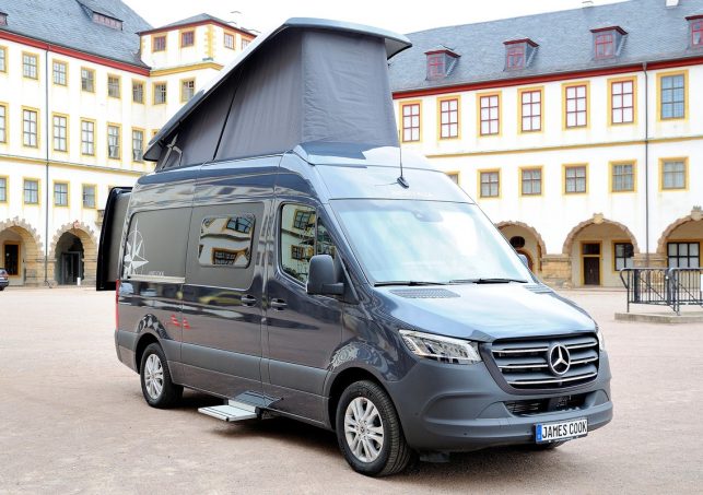 Considéré depuis des décennies comme la référence dans le secteur des grands fourgons, le James Cook réintègre le catalogue de l'aménageur franco-allemand (Groupe Rapido). Le renouvellement du Mercedes Sprinter a en effet donné des idées à son directeur général, Mike Reuer. Cette 4e génération du James Cook, un modèle apparu en 1978 sur un Mercedes T1, perpétue ainsi la tradition des fourgons grand confort disposant de quatre places et quatre couchages. Pour cela, le véhicule a droit à différents équipements comme un toit relevable à toile souple avec un lit de pavillon pour deux personnes. Il se démarque surtout par le montage d’un module arrière coulissant électrique (slide out) permettant de conserver un gabarit raisonnable en circulation (5,93 m) mais d’allonger la partie chambre à l’étape (en moins de 40 s) pour disposer d’un plus bel espace et d'un lit biplace (2,07 x 1,40 m). Cette version sera rejointe à la rentrée par un modèle classique sans toit relevable et un autre équipé d’une rehausse de toit rigide.