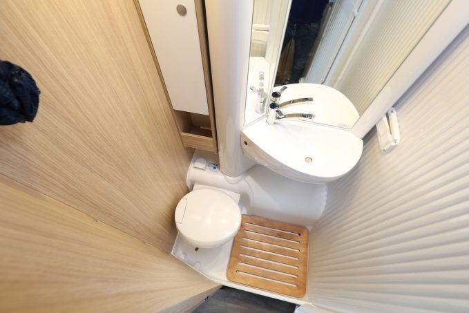 Cela ne vous aura pas échapper, le millésime 2020 commence à sérieusement se découvrir. La marque allemande Sunlight fait partie des premiers constructeurs à lever le voile sur sa prochaine collection. Au registre des nouveautés, le spécialiste des modèles économiques a décidé d’étoffer son offre d’une implantation inédite reprise en profilé et en intégral. Le catalogue enregistre donc l’arrivée respective des T et I 67 S, deux véhicules de 6,96 m très exactement. A bord, ces nouveautés se distinguent par une partie arrière occupée par des lits jumeaux sur soute de 190 x 80 cm chacun. Le poste sanitaire opte pour un compartiment modulable. En effet, la paroi sur lequel reposent lavabo et miroir pivote et condamne ainsi le WC au bénéfice de la douche. Cette astucieuse salle d’eau permet de gagner de précieux centimètres. Un gain de place que Sunlight met à profit pour loger un grand réfrigérateur de 167 l avec un compartiment freezer indépendant.