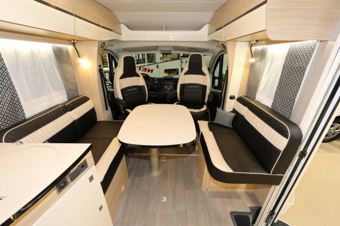 D’une manière plus générale, ce Baxter 64 LDF propose un plan atypique. Ce profilé allie en effet lit longitudinal et salon face-face, une implantation d'autant plus rare sur un gabarit contenu de 6,47 m précisément. Il profite d’une belle cuisine bénéficiant d’un grand réfrigérateur de 160 l avec un compartiment congélation indépendant. De base, le 64 LDF est commercialisé (sans toit) à 58 900 €, avec la motorisation 2.3 l de 140 ch.