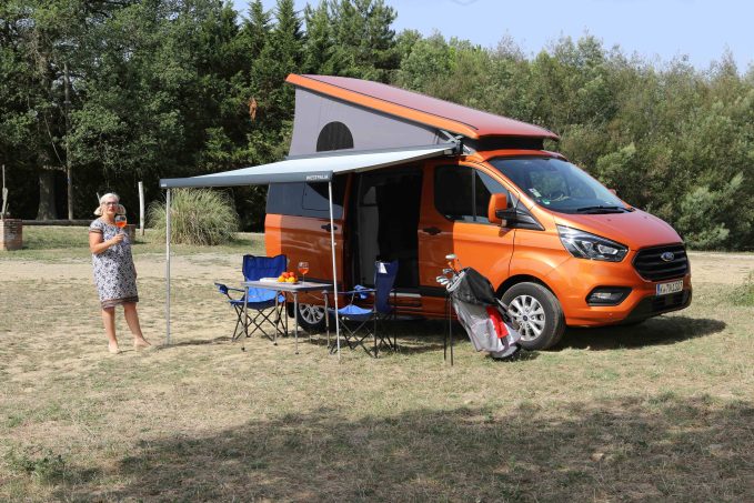 A l'étape, le Ford Transit Custom Nugget se montre exemplaire. Certes, nous ne disposons pas à bord de cabinet de toilette. Cette absence oblige à fréquenter les terrains de camping. En revanche, pour faire une pose le midi et se préparer un repas, on est bien loti. La glacière à compression est redoutable d'efficacité. Nous l'avions poussée à fond et nos aliments ont congelé dans la nuit. Le petit réchaud est également performant. Il est alimenté par une petite bonbonne qui prend place dans une alvéole aménagée dans le réservoir d'eau propre. Ce dernier affiche un volume de 42 litres. Et celui des eaux usées est de même capacité.