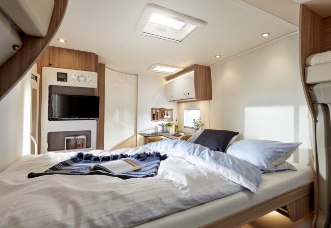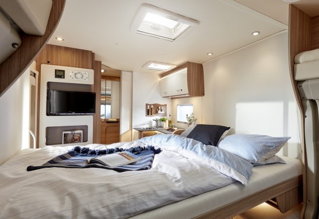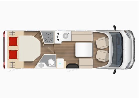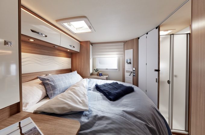 Deux implantations vont être proposées avec des plans directement issues de la série Lyseo TD. Sur un gabarit de 7,20 m, le Delfin T732 est un profilé parfaitement dans la tendance avec salon face/face, lit central et salle d’eau à double cloisonnement. En revanche, Bürstner laisse toutefois la possibilité de disposer d’un lit de pavillon en option (1 490 €).