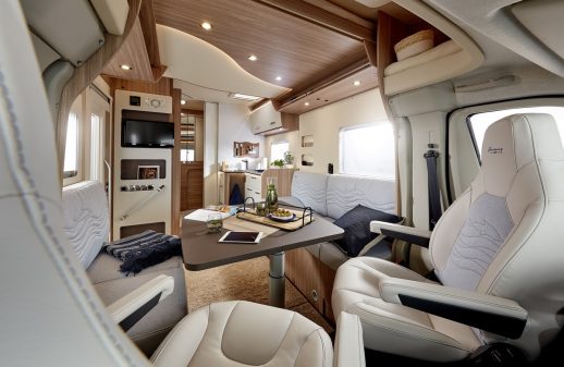 Fidèle à l’image du constructeur, ces Delfin bénéficient d’un intérieur soigné avec une ambiance chaleureuse. Pour ces deux modèles, la marque a opté pour le mobilier Riva Loft. A noter que la conception de l’ameublement est issue des usines françaises de Wissembourg, les meubles étant ensuite acheminés et assemblés dans la ligne de production de Kehl.