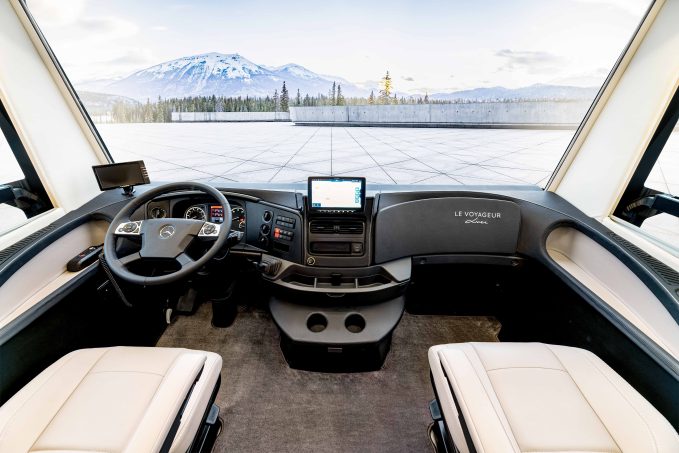 D’un point technologie, Le Voyageur a décidé de développer davantage l’aspect connecté des véhicules. Ainsi, la marque angevine a logé un tableau de commandes tactile Garmin (pour contrôler toutes les fonctionnalités du véhicule), d’un autoradio Alpine de 9" avec GPS ou encore d’une vision à 360° (en option) pour simplifier les manœuvres de ce mastodonte.