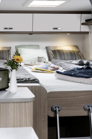 Présentés l’an passé durant le CMT de Stuttgart, les Vans V de Carado se dévoilent en ce début de saison 2020 dans une série limitée baptisée Europa Edition. Extérieurement, ces éditions spéciales se distinguent très rapidement par le porteur Citroën Jumper pourvu d’une teinte de cabine Gris Graphit avec jantes 16". De plus, la marque allemande a opté pour une motorisation standard de 140 ch. Sur la carrosserie, la sérigraphie évolue également, avec une volonté de se montrer plus dynamique dans l'aspect. Pour les agencements, les V132 et V337 conservent leurs plans initiaux. Long de 5,99 m, le V132 profite d'un lit transversal sur soute garage, là où le V337 se différencie par des lits jumeaux sur une longueur supérieure portée à 6,65 m. Tous deux partagent un salon pour 4 personnes, un cabinet de toilette avec cloison pivotante ou encore une cuisine simple, mais fonctionnelle.