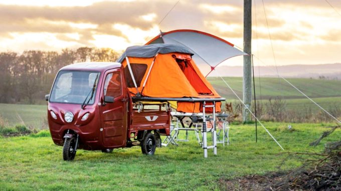 Sur le marché allemand, l’engin sera disponible en deux versions avec un équipement comprenant une cuisine extérieure, une table et des tabourets pliants ainsi qu’une toile de protection pour les repas. Une échelle télescopique est également prévue pour faciliter l’accès à la tente, capable d'accueillir deux personnes pour y dormir.