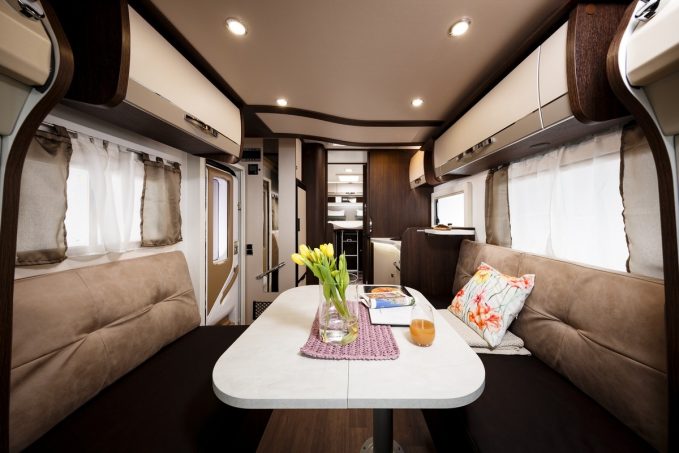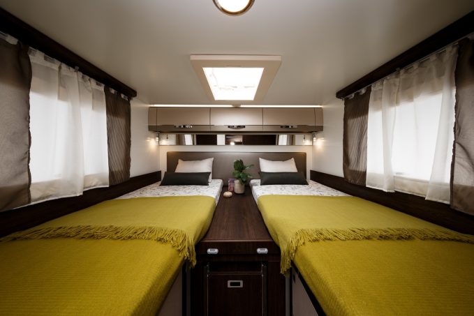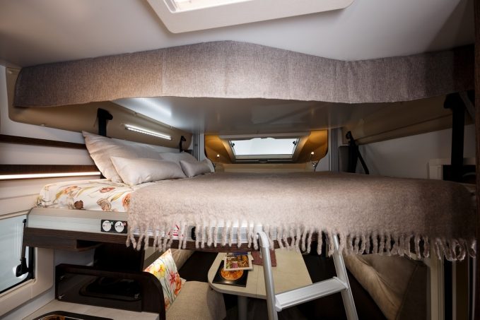 Parmi les nombreuses nouveautés de printemps, Benimar a décidé de se distinguer. Ce début de saison marque l’arrivée d’un véhicule totalement inédit pour la marque espagnole. Ce camping-car est à mettre au crédit de la série Tessoro avec le lancement prometteur d’un profilé de 7,43 m de longueur. A son bord, ce profilé joue la carte du salon face-face, mais l'associe pour l'occasion à des lits jumeaux en chambre arrière. Le coin repas profite donc de banquettes en vis-à-vis et se voit surmonté, en prime, d'un lit de pavillon double. Le constructeur revendique des cotes de 160 x 200 cm, avec un dispositif électrique de série pour l'abaisser ou le remonter. En partie arrière, la chambre reçoit des couchages indépendants de 85 x 190 cm chacun. Sous le sommier se trouve une grande soute garage accessible depuis l’extérieur, mais aussi par une trappe intérieure.