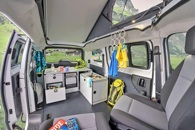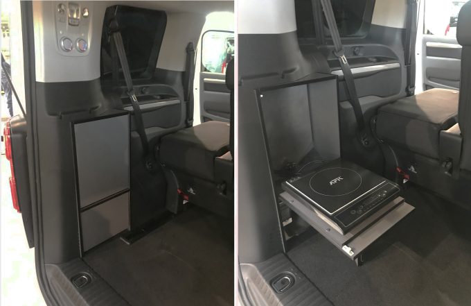 La plus significative concerne l'adoption d'une plaque de cuisson basculante, intégrée dans le flanc gauche de son coffre. Ce réchaud électrique, fonctionnel uniquement à l'étape, branché sur le réseau 220V, vient en complément du réchaud à gaz disposé lui dans l'un des deux caissons modulables du Vanster. Cette “subtilité” permet ainsi de le classer en VASP (Véhicule Automoteur Spécialement Aménagé), le catégorisant comme camping-car pour échapper à toute surtaxe.