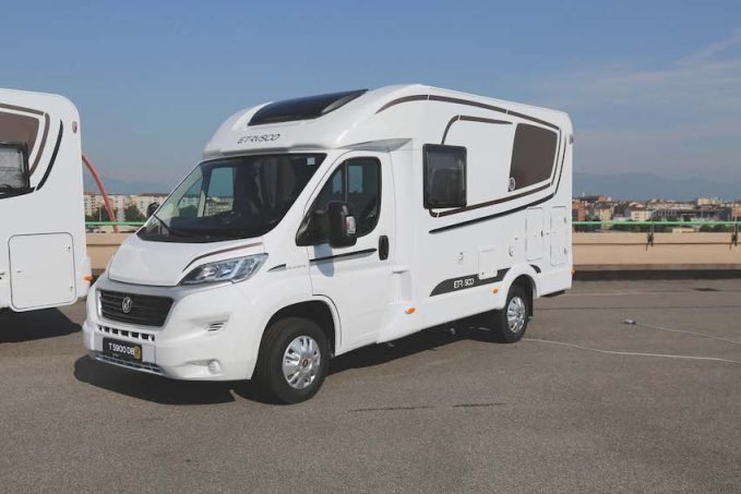 Discret, l’Etrusco T5900 DB, de seulement 5,99 m de longueur, propose un habitacle optimisé. Utilisant la largeur classique d’un profilé, ce véhicule italo-allemand compte, en partie arrière, un lit transversal. Lequel surmonte une soute garage autorisant le chargement aisé d’éléments volumineux comme des vélos. Un classique du genre au même titre que le salon prévu pour 4 personnes. Il se compose des sièges pivotant de la cabine et de la banquette face route. Avec ses ceintures, cette assise est homologuée pour transporter deux passagers. Enfin, le bloc-cuisine droit abrite, sous le plan de travail, un petit réfrigérateur de 89 l. Face à cette kitchenette, se trouve la salle d’eau où l’espace est optimisé. Une paroi pivotante permet d’isoler, de manière intelligente, la douche du cabinet de toilette. Le T5900 DB est commercialisé à 43 400 €. Notez toutefois que chez Etrusco, sur ce même gabarit de moins de 6 m, le T5900 FB peut se montrer séduisant. Il bénéficie d’un plan radicalement différent avec un lit à la française et salle d’eau attenante. En revanche, son prix est supérieur (45 099 €).